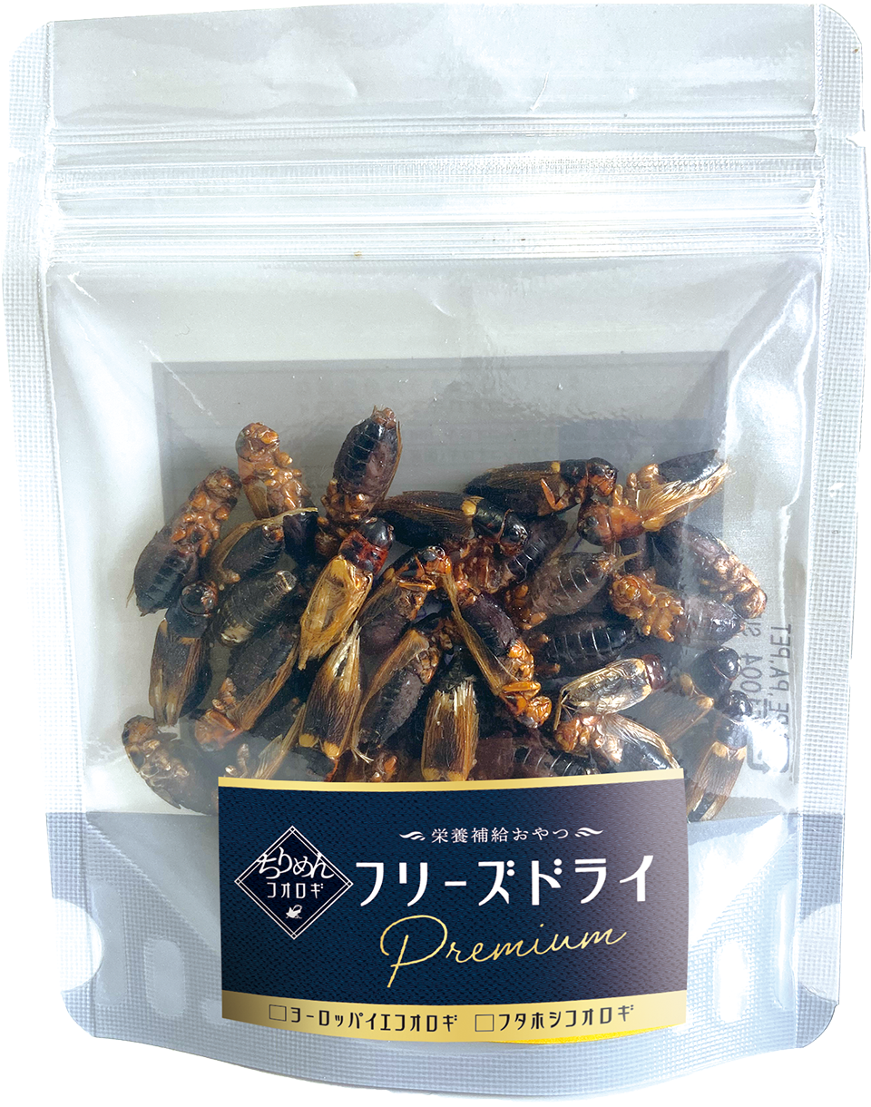 Acriketi独自の国産ちりめんコオロギのみをフリーズドライ原料に使用しています。