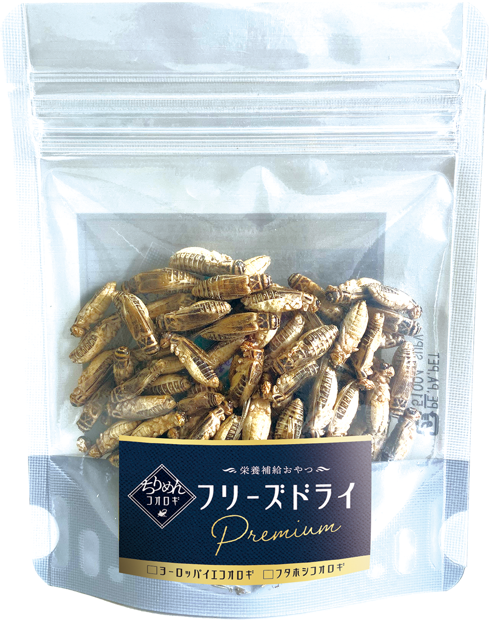 Acriketi独自の国産ちりめんコオロギのみをフリーズドライ原料に使用しています。